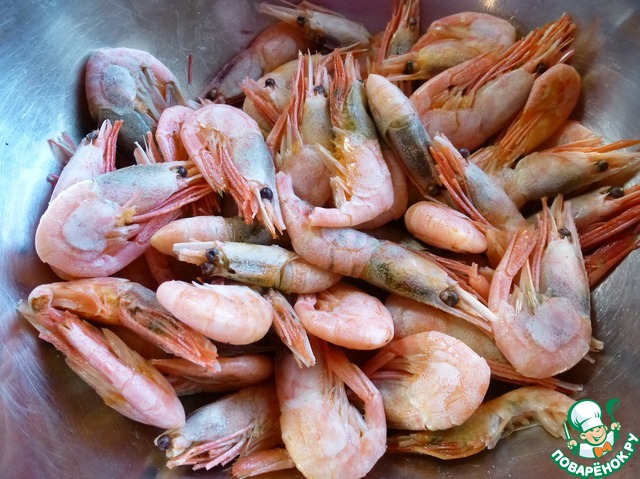 - Креветки (отварные) — 400 г