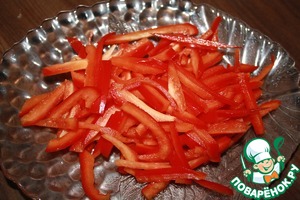 Перец нарезать тонкой соломкой