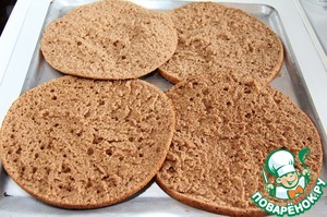 • Выпекать при 180* 20 мин. Дать коржам остыть и каждый разрезать вдоль на 2 части.