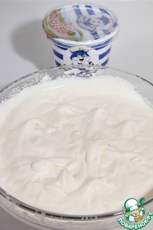 В сметану добавить сахар и слегка взбить миксером, чтобы сахар растворился, а крем стал пышным. Я не случайно показываю вам название сметаны, которую я использовала, потому что она хорошо взбивается и не превращается в "молоко". Только ее я могу взбить. Крем готов. Разрезать два банана вдоль пополам и отложить 3 половинки для украшения торта. Остальные тонко порезать. Можно использовать и больше бананов в торт. Ориентируйтесь на свой вкус.