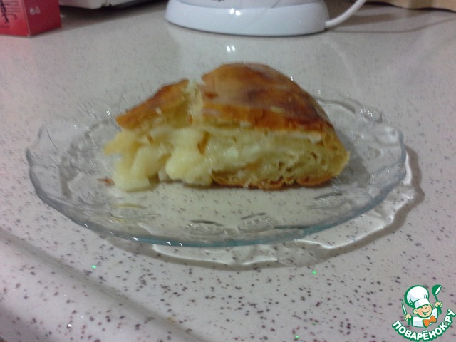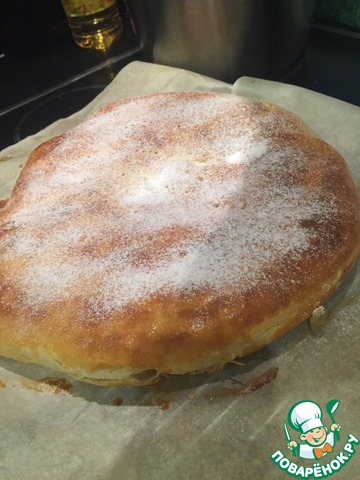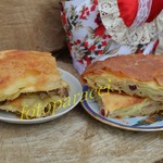 Тесто: Растворяем в тёплом молоке дрожжи, добавляем яйцо, соль и муку, замешиваем мягкое тесто. Делим его на 2 части, каждую раскатываем в пласт и смазываем мягким маслом. Затем скатываем пласт в рулет, который, в свою очередь, закручиваем в улитку. Те, кто готовил по этому рецепту, говорили, что использовали не всё масло. Много показалось. Но нужно использовать всё масло. От этого зависит слоистость теста. Масло нужно размягчить, а не растопить. Если просто размягчённое масло, то мазать его будет легче, а жидкое масло много не намажешь. Плотно упаковываем обе улитки в пищевой полиэтилен и отправляем на полку холодильника на 2 часа, максимум на 4. ну а пока займёмся магалябией (кремом). Итак, наша магалябия готова и остыла до тёплого состояния. Достаём наше тесто из холодильника. Не месим!!! Сразу так и раскатываем в 2 пласта. Т. е. как скрученная в улитку, так и кладём сверху скакалку, и, не боясь, раскатываем. Толщина примерно 2-3 мм. Один кладём на противень, смазанный маслом, сверху выкладываем начинку - магалябию, разравниваем, второй пласт чуть больше, так, чтобы концы можно было на 2 см подвернуть под наш нижний пласт. Чуть потыкаем вилочкой верх фытыра и смажем его желтком, взбитым с небольшим количеством молока. Ставим в хорошо разогретую до 180 градусов духовку и печём 25-30 минут до красивого румяного цвета. Даём чуть остыть и посыпаем сахарной пудрой. Я не посыпала, не было его. Можно кушать как тёплым, когда начинка не застывшая, так и холодным.