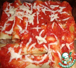 Рецепт «Каннеллони с фаршем и балажанами под томатным соусом с моцареллой»: