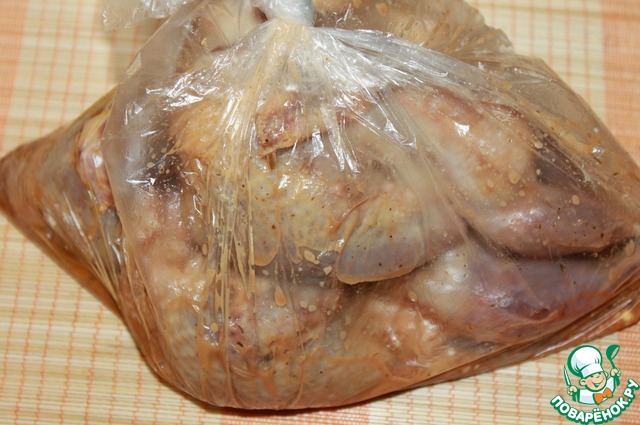 Замариновать перепелок, оставив на 8-10 часов в прохладном месте. Я это делаю в полиэтиленовом пакете. За это время надо периодически раза 3 перемешать, чтоб птички равномерно промариновались. Соль я не использую