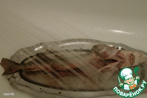 Подготовить рыбу, выпотрошить и обмыть под струёй воды. Я покупала уже потрошенную и без верхних чешуек по центральному хребту (или как он называется), замороженную.