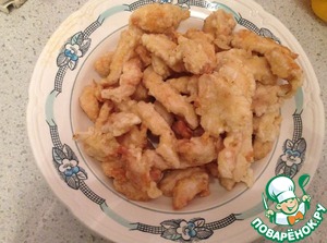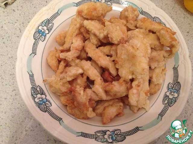 Вот такие кусочки филе получились у меня. Здесь филе в 2 раза больше, чем по рецепту, т. к. я готовила на 8 человек.