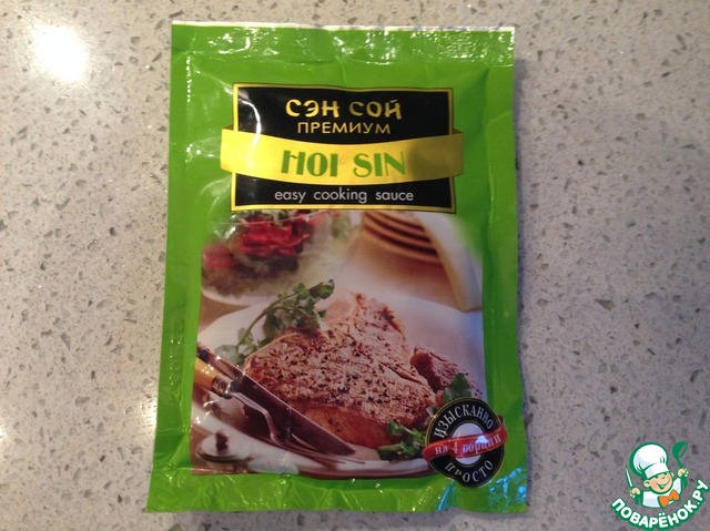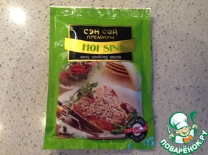 Вот так выглядит упаковка соуса, который использовала я. Но его можно приготовить и самому, смешав по вкусу воду, соевый соус, крахмал (для густоты), сахар, немного меда, растертый кориандр, черный перец, сок лимона, измельченный чеснок и имбирь.