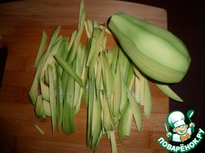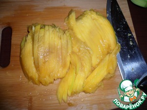 Нарезать манго соломкой. Манго должен быть спелым, но не слишком мягким