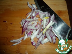 Очередь красного лука, тоже соломкой