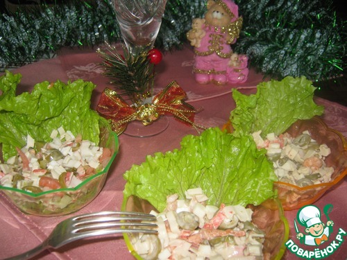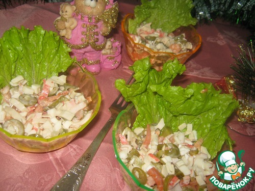 Рецептом этого салата со мной поделилась знакомая. Его подавали в кафе, где она работала официанткой. Получается необычно и вкусно.