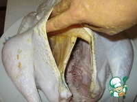Индейку желательно размораживать заранее (моя 4,5 кг размораживалась 5 часов), так что, рассчитывайте время. Индейку хорошенько моем, вынимаем из неё всё нам ненужное (шею, сердце... и. т. д.) Индейку опускаем в раствор и заливаем холодной водой до полного её покрытия. Если есть время, то можно её переворачивать время от времени, купать, массажировать))) Оставляем индейку в растворе на сутки, а в идеале на 2-3 суток. За это время рассол проникнет в мясо, насытит его влагой и улучшит вкус.