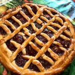 Песочный пирог с клубничным вареньем и грецкими орешками
