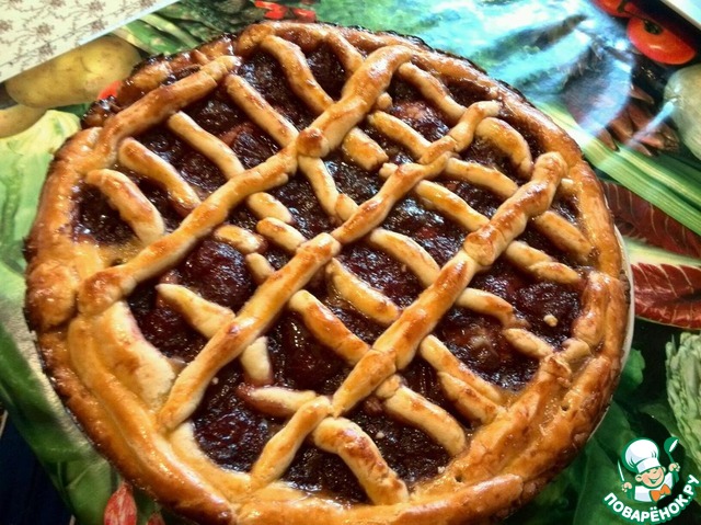 Рецепт «Песочный пирог с клубничным вареньем и грецкими орешками»: