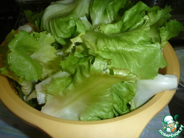 Розетку салата разбираем на отдельные листы, удаляем увядшие и повреждённые части. -