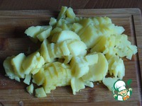 Четыре небольших отварных картофеля очищаем от кожуры и нарезаем кубиками |