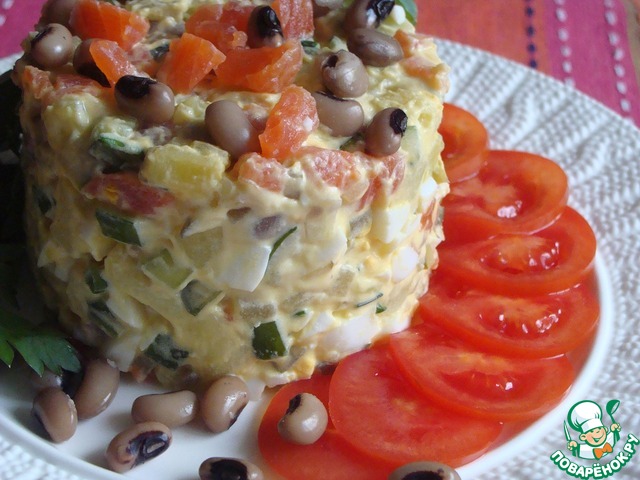 Половина стакана отварной фасоли ( у меня фасоль Черный глаз" от Мистраль - она очень нежная и такая рассыпчатая на вкус) отправляется также к салату. |