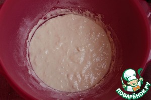 Полученный таким образом замес накрываем крышкой и убираем в теплое место на 3,5 часа. Вот что получилось...