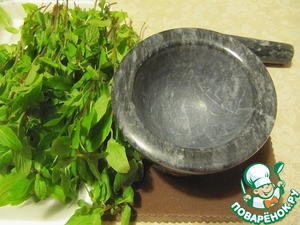 Листики мяты положите в ступку, добавьте соль, разотрите в кашицу.