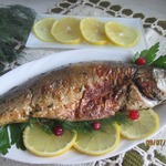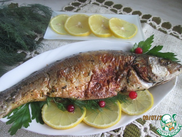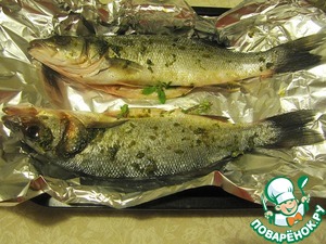Рыбу промойте, очистите и выпотрошите. Залейте мятным маринадом и уберите в прохладное место на 2-3 часа. Затем форму застелить фольгой, смазать растительным маслом, выложить рыбу, в брюшко можно положить по паре веточек мяты, запекать в предварительно разогретой до 180 С духовке: 15 минут - накрыв фольгой, потом фольгу снять и запекать до готовности, следить, чтобы не пересушить рыбу.