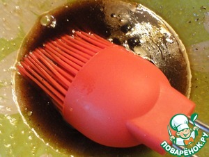 Обмазываем нашу вырезку масляно-соевой эмульсией.