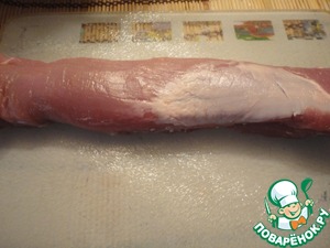 Разрезаем вдоль, не дорезая до конца. Раскрываем, как книжку. Отбивать смысла не вижу. Мясо вырезки и так достаточно нежное.