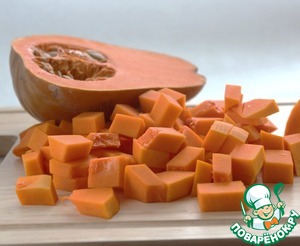 Тыкву нарезать кубиками примерно 1,5 * 1,5 см.