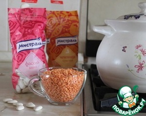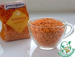 Отмерить 1 стакан красной чечевицы от "Мистраль".