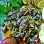 Еще через 10 мин добавляем полстакана кипяченой воды и сметану, перемешиваем и выключаем сковороду через 5 мин после закипания. Именно в таком порядке субпродукты получаются очень нежными, и, даже не знаю, насколько вкусными, чтобы их можно было с чем-то сравнить!