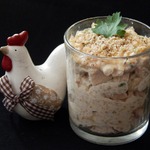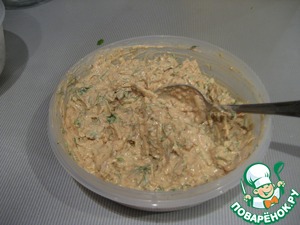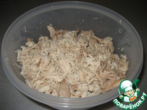 В идеале укладываем в салатник слоями: куриное мясо - соус - мясо - соус. И даем настояться в холодильнике. Но если у вас, как часто и у меня, нет на это времени, то можно все перемешать и звать к столу. Приятного аппетита!