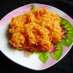 Эти "лепешки" мелко порубить вдоль и поперек, добавить к моркови.