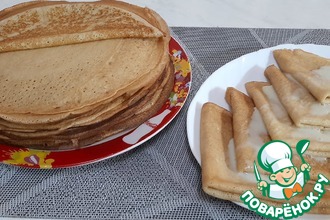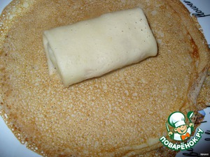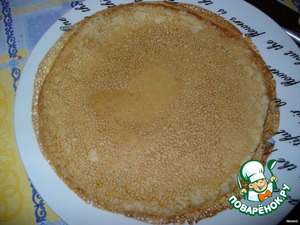 Приготовить тесто для блинчиков. Испечь их с одной стороны. Если кому интересно, я делаю блинчики так https://www.povarenok.ru/recipes/show/6234/