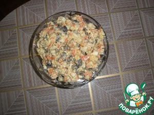 Этот же салат можно готовить и без моркови, но это будет уже другой вкус, а для менее торжественного случая или просто для покушать - норму желательно поделить на два, украшать уже не было времени, спешила к приходу гостей... Приятного аппетита)))