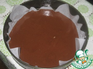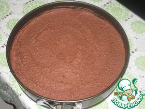 На дно формы для выпекания опускаем бисквитный корж. Сверху выкладываем крем, разравниваем. Отправляем в холодильник минимум на 6 часов.