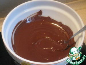 Пока готовый корж остывает, займемся кремом. Растопим на паровой бане шоколад и оставим остывать до комнатной температуры.