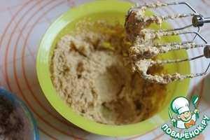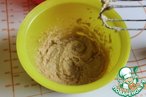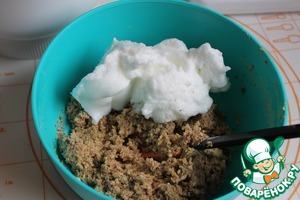 Муку смешиваем с молотыми орехами и постепенно добавляем к нашей массе.