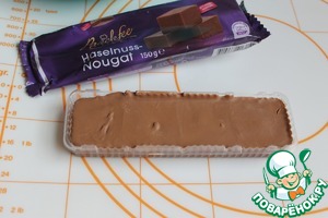 Для начинки нам понадобится такая шоколадная нуга. Специально сделала фото, не знаю, есть ли она в России, но можно ее заменить на молочный шоколад или Нутеллу.