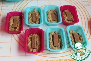 Формочки берем любые. У меня такие вот ваночки. Кладем по ложке нашего теста и в середину нугу, а сверху еще ложку теста. Ставим в разогретую духовку до 180гр на 25 минут.