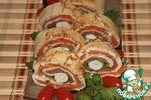 Рецепт «Блинные рулетики с семгой и эстрагоном»: