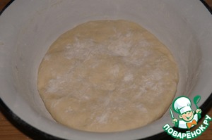 Замесить самое простое дрожжевое тесто: мука, соль, вода или молоко, дрожжи. Поместить в миску, накрыть салфеткой и убрать в теплое место на 30 минут.