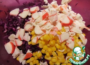 Так интересно, что за салат такой - и капуста, и кр.палочки и сахарная пудра