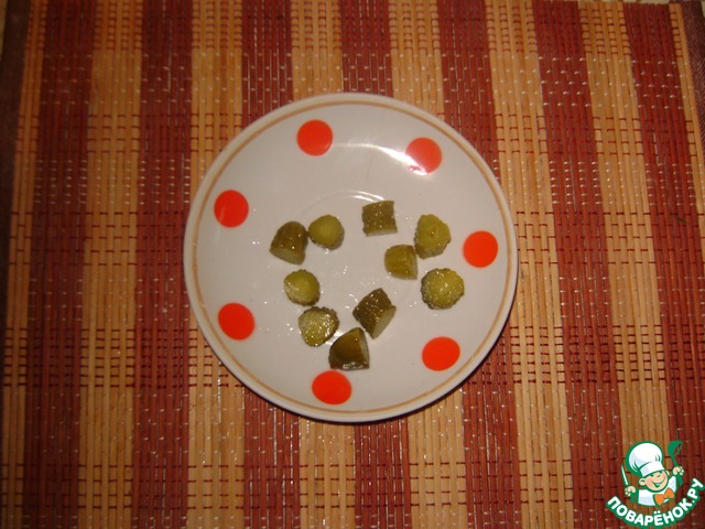 6. Огурчики маринованные (у меня корнишоны. Думаю, со свежим огурчиком тоже будет вкусно.)-3 шт.