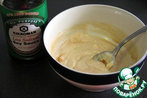 В отдельной посуде готовим соус. Майонез, кетчуп и соевый соус хорошо перемешиваем.