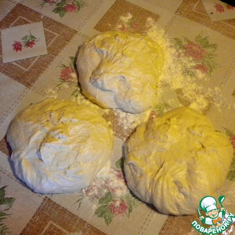 Тесто делим на три шарика, примерно по 500 г в каждом.