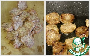 Колбаски порезать и слегка обжарить с оливковым маслом.