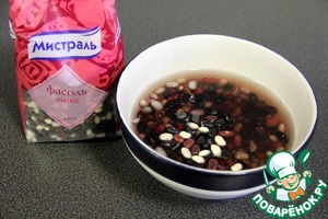 Фасоль предварительно замачиваем на ночь и утром отвариваем.