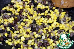 Добавляем фасоль, кумин, кукурузу и соль и немного обжаривем.