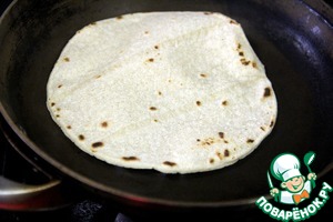 Тортильяс кладем на раскаленную сковороду и обжариваем примерно по 1 минуте с каждой стороны.