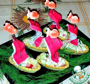 Рыбный салат я решила оформить в виде лодочки - парусника.