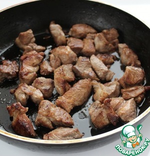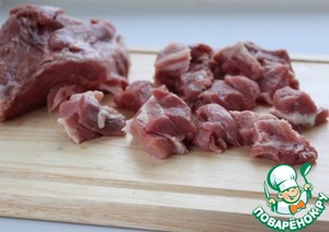• Нарежьте небольшими кусочками мякоть свинины или баранины.