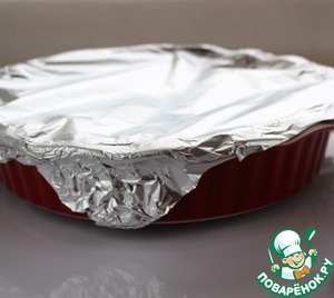 • Закройте форму крышкой или фольгой и поставьте в разогретую до 180 градусов духовку на 30 минут.