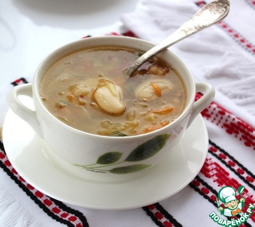 Квашеную капусту я отвариваю отдельно в небольшом количестве воды и затем добавляю вместе с бульоном к фасоли, но можно варить всё вместе.